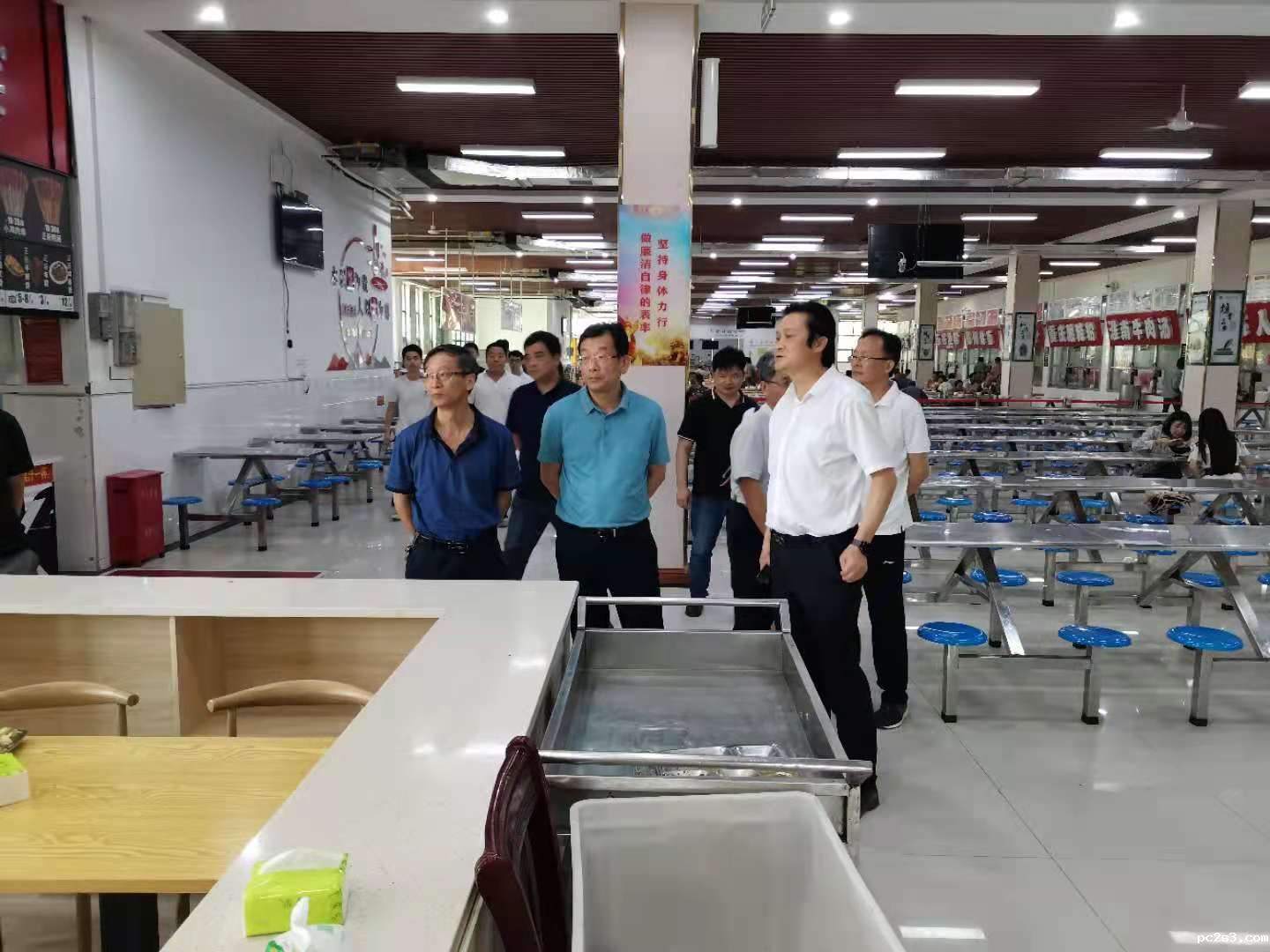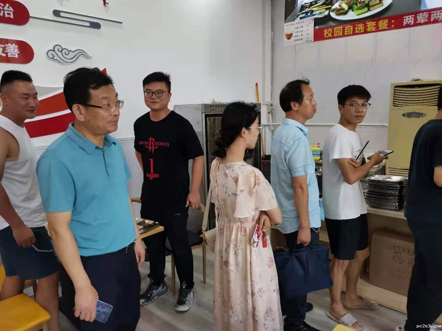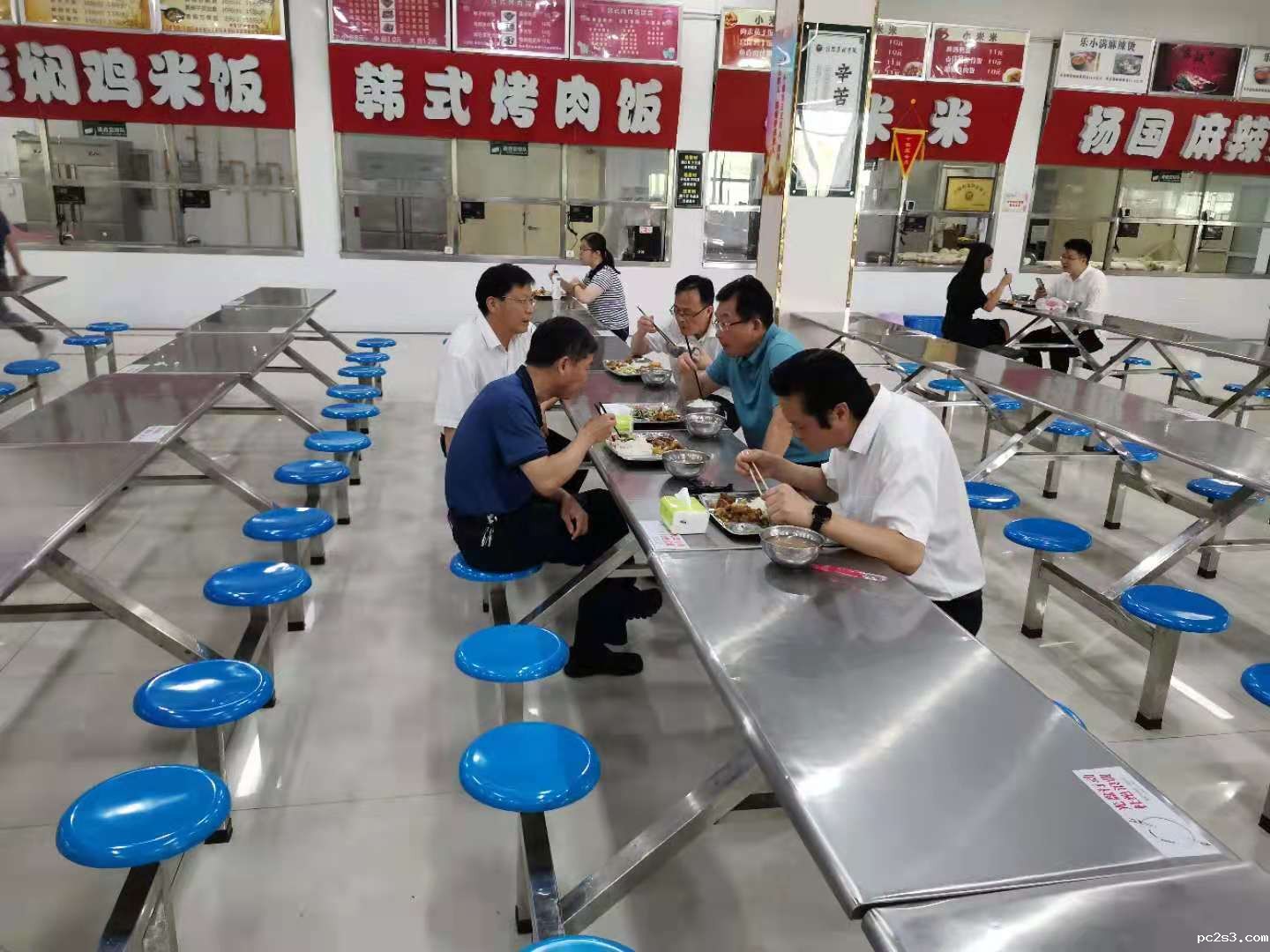 2021年7月27日中午,校党委会书记余作斌在副校长黄遵东的陪同下到我校二餐二楼的教工餐厅调研指导工作,后勤管理处(后勤服务总公司)处长(总经理)李巨、副处长(副总经理)厉相卿陪同调研。