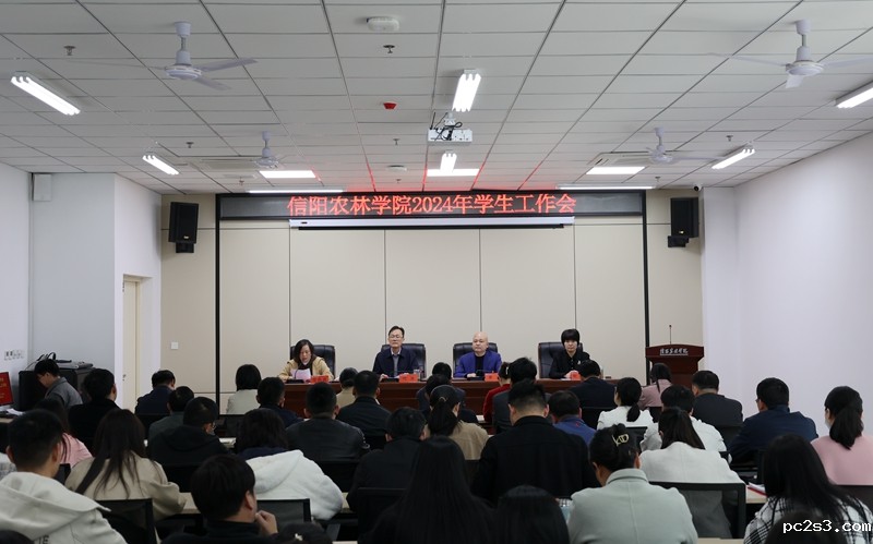 简频捷宣读了2023年度有关学生工作优秀单位和优秀辅导员的表彰决定。学校领导为优秀单位颁发了荣誉奖牌。党委学工部部长、学生处处长靳潢作了2024年学生工作报告,回顾总结了2023年学生工作,并对2024年学生工作作了具体安排。农学院、药学院和动物科技学院作了典型发言。