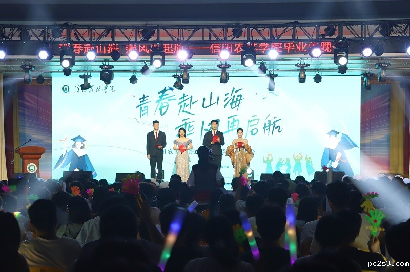 整场晚会以“青春·忆往昔”“梦想·绽芳华”“未来·勇向前”三个篇章铺陈开来,包括灯光秀、独唱、歌伴舞、舞蹈等多种节目形式,整台晚会创意十足,氛围热烈,所有演职人员用全情的投入和倾情的付出,呈现了信农师生在团结中奋进,在创新中发展的昂扬姿态和精神风貌。晚会在现代舞的青春律动中拉开序幕,点燃了现场观众的热情。歌曲《着魔》的激扬旋律象征着毕业生们用奋斗去书写青春的呐喊。《第一时间》《有形的翅膀》《荒漠上行走》《世界赠予我》等一首首经典的曲目在同学们的深情演绎下,焕发出新的魅力,彰显同学们青春的力量。歌曲《启程》将晚会推向第一个高潮,毕业生代表们青春有力的宣言,表达了对母校深沉的不舍与真挚的祝福。舞蹈《小河淌水1952》带我们穿越时空隧道,用饱含深情的舞姿传递着同学们对祖国炙热的爱。《籽籽同心一家亲》用悠扬的旋律与精美的民族服饰交织,在舞台上绘制出一幅绚烂的画卷,吟诵着树高千尺有根,水流万里有源,56个民族民心相通、守望相助、团结和睦的动听赞歌。歌伴舞《只有河南》用青春致敬经典,象征着毕业生们用青春与智慧绘就乡村振兴新画卷的铮铮誓言。