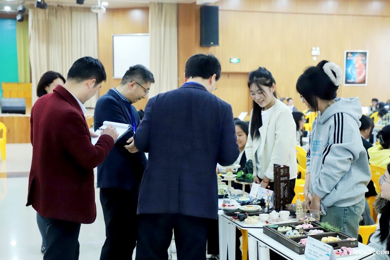 本次大赛共吸引来自我校、河南工业大学、河南农业大学、河南科技大学、郑州轻工业大学等省内21所高校组队参加,参赛作品涵盖茶点类75项,茶饮类43项,茶馐类30项,茶文化艺术类22项,共计170项。此次大赛包括作品展示(专家现场评审)和现场答辩两个环节。