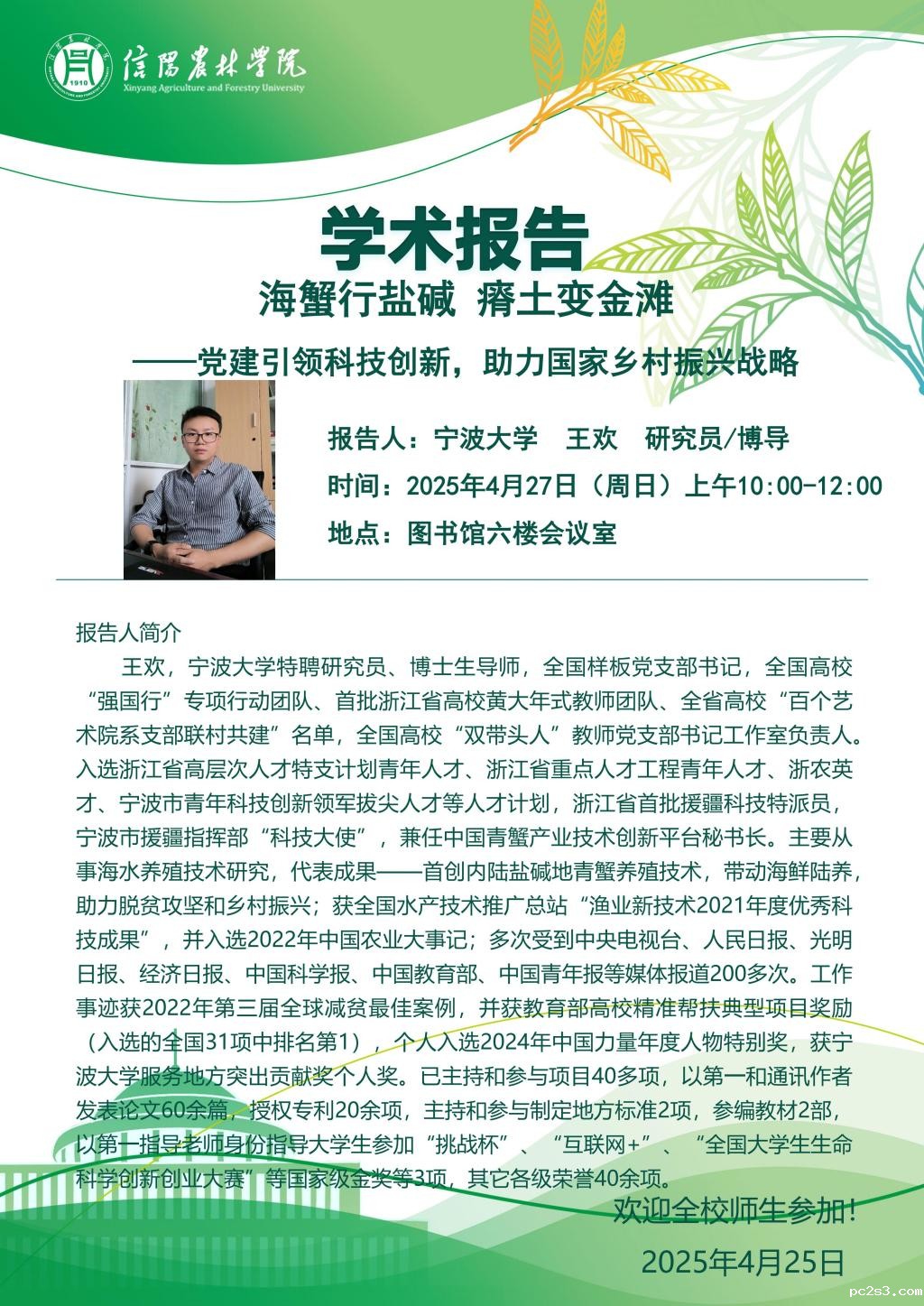 学术报告——海蟹行盐碱 瘠土变金滩(党建引领科技创新,助力国家乡村振兴战略)