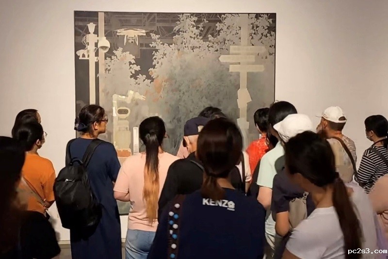 当天河南省美术家协会驻会副主席、秘书长陈文利带来一场导览活动,深入解读中原画风的艺术风格和精神内涵,现场陈文利重点介绍了侯泽涛老师的作品,《科技兴农逐梦时》取材于新利18备用官网校内的智慧园林实验室,这生动场景的背后,是党和国家“科技兴农”战略的深远擘画。如今,农业机械化与智能化水平节节攀升,创新成果落地生花,先进技术与设备在田野间生根结果,不仅绘就了产业升级的壮阔画卷,更彰显着我国在农业科技创新领域的坚实足迹与磅礴力量。(撰稿/风景园林艺术学院 葛晖 供图/大河艺术网)