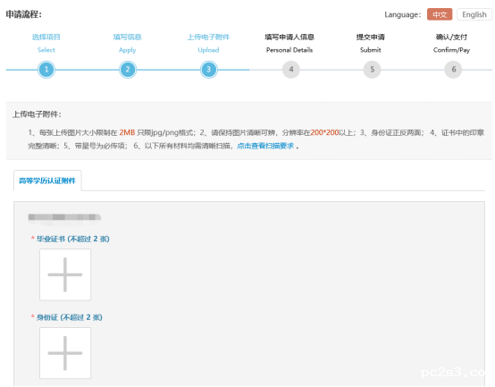 在接下来的页面里,按照申请流程添加学历并按照页面提示要求认真填写个人及毕业证书信息。