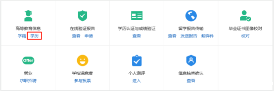 成功登录后,在“高等教育信息”中点击“学历”,通过身份核验后,即可查到与注册身份证号对应的学历。