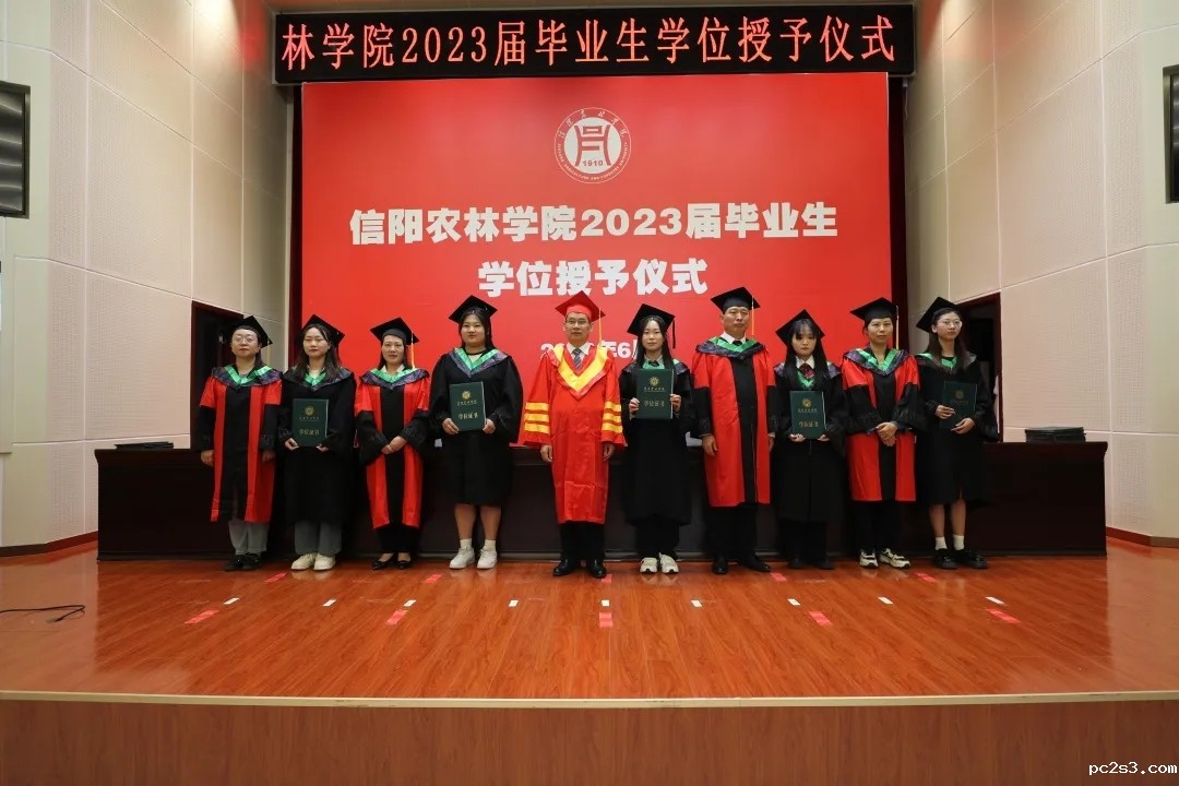 林学院2023届毕业生学位授予仪式在庄严隆重的国歌声中拉开序幕,毕业生们依次上台,老师们为每一位毕业生拨穗正冠、颁发学位证书并合影留念。