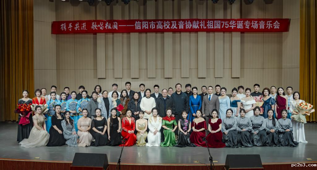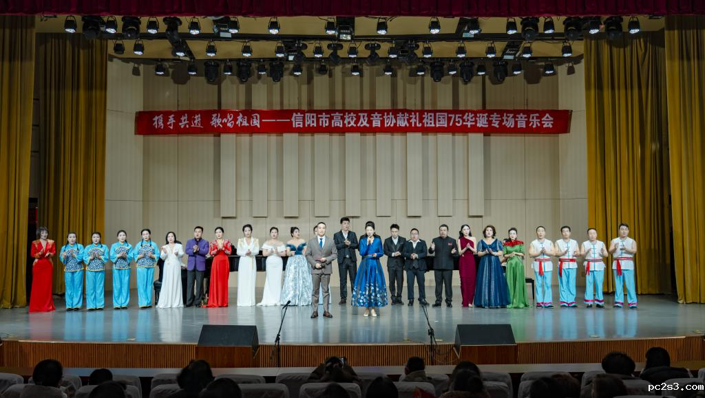 以艺术之韵彰显时代精神,用旋律华章凝聚爱国力量。“携手共进 歌唱祖国·信阳市高校及音协献礼祖国75华诞专场音乐会”于12月20日晚在信阳师范大学奏响。这场音乐会由共青团信阳市委指导,信阳市音乐家协会联合信阳师范大学音乐与舞蹈学院、新利18备用官网人文与传播学院、信阳学院音乐学院、信阳职业技术学院学前与艺术教育学院、信阳艺术职业学院音乐与舞蹈学院共同承办,汇聚了信阳市各大高校的音乐教师,展现了我市教师的文化担当,凝聚着爱国主义情怀。我校副校长李益民、人文与传播学院院长张立恒、部分师生共同观看了此次音乐会。