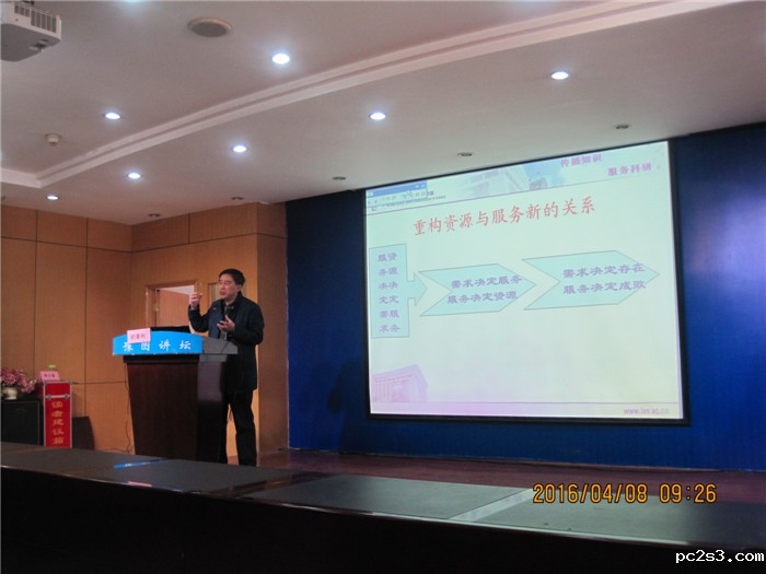 随后,中国科学院国家科学图书馆编辑出版中心主任、《图书情报工作》杂志社主编,二级研究馆员、博士、博士生导师、博士后指导教师初景利教授做了题为“从资源能力到服务能力——图书馆的转型变革战略”的学术报告。初教授强调电子资源是未来图书的发展趋势。