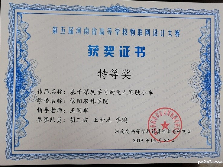6月22日,由河南省高等学校计算机教育研究会主办、郑州轻工业大学承办的第五届河南省高等学校物联网设计大赛落下帷幕。来自省内18所本科院校的51支参赛队参加大赛。我院今年首次参赛,选拔了3名学生胡二波、王金龙、李鹏(指导老师:王同军)组成1个队参赛,经过1天紧张激烈的比拼,最终获得了特等奖的好成绩。