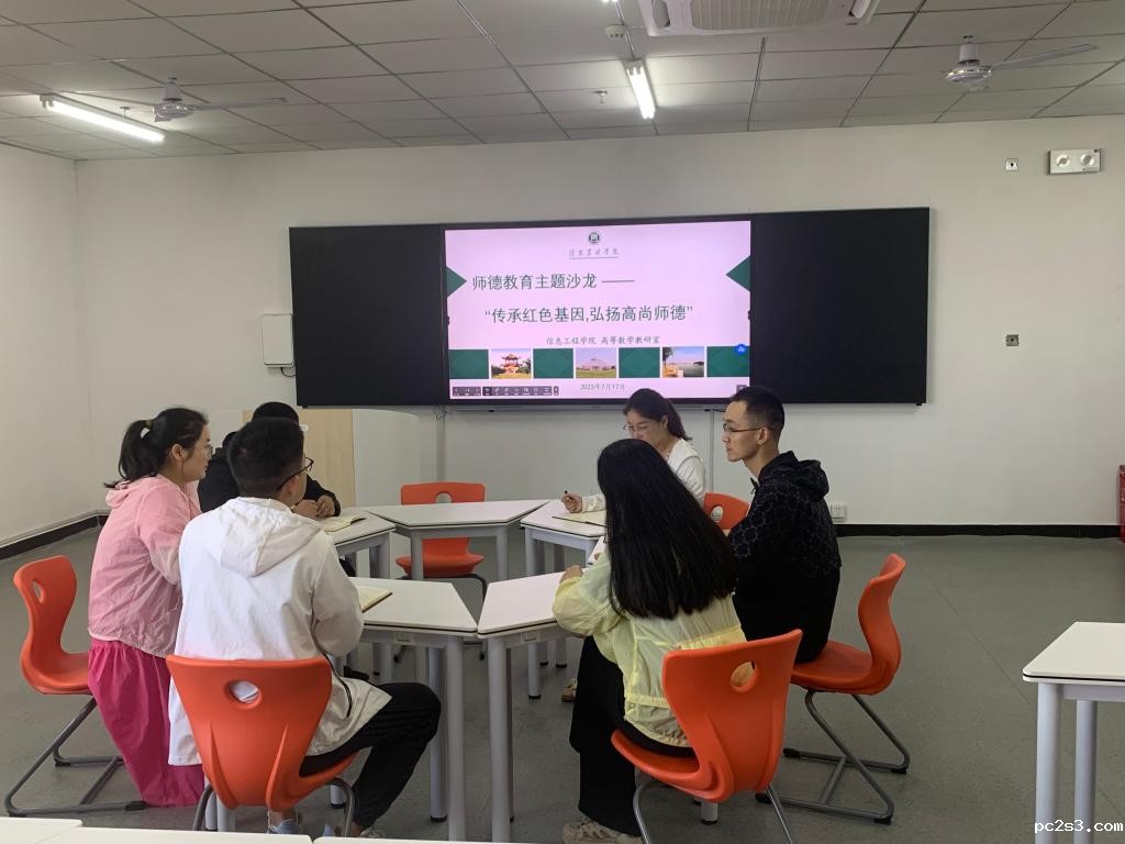 为深入学习贯彻习近平新时代中国特色社会主义思想,贯通学习习近平总书记关于教育的重要论述和指示批示精神,落实学院师德师风学风教育工作,筑牢广大教师为党育人、为国育才初心使命,7月月17日上午,信息工程学院高等数学教研室在双创中心503开展了传承红色基因,弘扬高尚师德”师德教育沙龙活动。