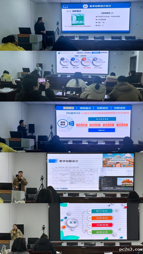 此次比赛分为新进教师组、青年组两个组别。参赛选手分别从教学目标、学情分析、问题导向、创新举措、创新效果、课程思政特色、创新成果辐射等多个方面进行教学创新设计汇报。老师们准备充分、精神饱满,深入挖掘课堂教学的痛点和难点,进行了开拓性地设计与创新,巧妙结合线上线下教学优势,充分展示了深厚的教学功底和勇于探索创新的精神风貌。赛后评委肯定了各位教师对课程建设所做的创新举措,教学手段多元灵活,内容丰富多彩,同时也给出了具体的改进方向和改善建议。
