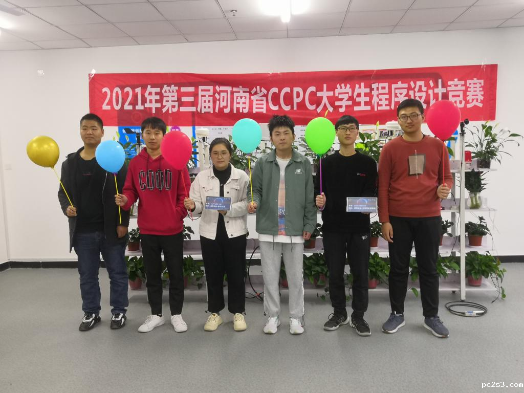 2021年10月30日,信息工程学院选派的两支队伍在双创中心楼506线上参加了第三届河南省CCPC大学生程序设计竞赛。在学院领导的大力支持和教练肜丽、骆魁永老师的悉心指导下,经过激烈角逐,由网络工程专业2020级学生赵普、郭玺、唐鑫组成的“你测评机保熟吗”队发挥出色,最终荣获铜奖,实现了我校在此大赛中奖牌零的突破。