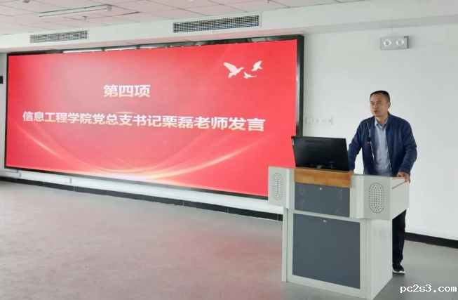 大会第四项,由信息工程学院党总支书记栗磊对大会进行总结,栗磊书记用先辈们的事迹来鼓励我们,要如激流一般勇往直前,不畏艰难,不惧挑战。他的讲话字里行间充满力量,激励大家奋勇向前。