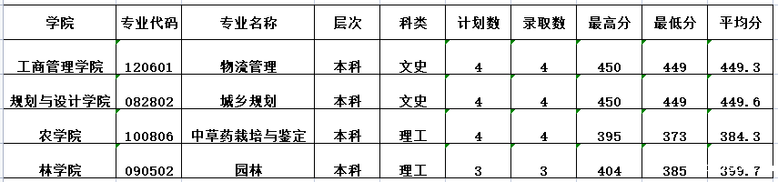 2022年学校在甘肃省本科计划招生15人,实际录取15人。男生6人,女生9人。汉族15人。共青团员8人,群众7人。各专业录取分数见下表。